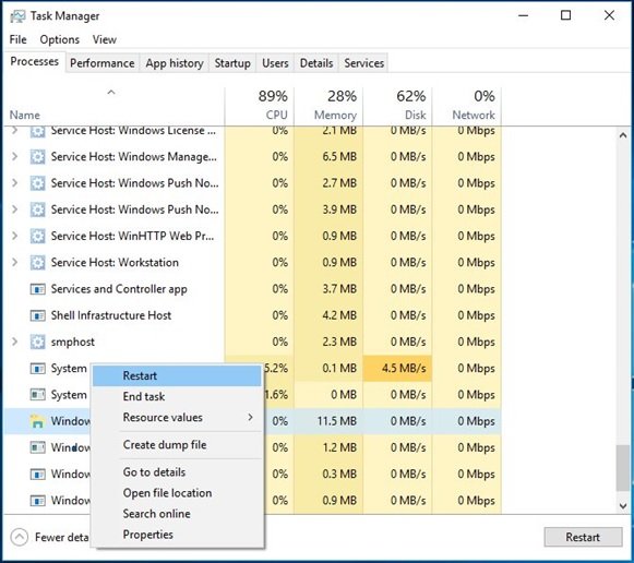 یکی از معروفترین پردازههایی که تقریبا همه کاربران با آن آشنا هستند ویندوز اکسپلورر است. بستن این پردازه در برخی موارد باعث میشود تا یکسری مشکلات برطرف شود. کاربران حرفهای زمانی که مشاهده میکنند پوشهها به راحتی باز نمیشود یا آیکن مربوط به فایلها به درستی نمایش داده نمیشود این پردازه را بسته و دومرتبه اجرا میکنند. در ویندوز 10 میتوانید روی این پردازه کلیک راست کرده و گزینه Restart را اجرا کنید. اما در ویندوزهای قبلی پس از بستن آن ابتدا باید کلیدهای Ctrl+Alt+Del را فشار داده تا صفحه لاگین باز شده و Task Manager را اجرا کنید. پس از اینکار در مرحله بعد در منوی Run باید عبارت Explorer.exe را تایپ کرده و کلید اینتر را فشار دهید تا دومرتبه اجرا شود.