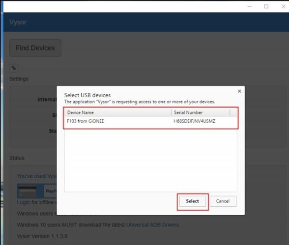گام چهارم، اکنون گوشی را از طریق کابل یواسبی به کامپیوتر متصل کرده و روی گزینه Find Devices کلیک کنید. در ادامه روی دستگاهی که پیدا شده است کلیک کنید.