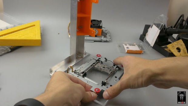 ابتدا ما به دو درایو اپتیکال CD یا DVD نیاز داریم. ما قصد داریم که از استپ موتورها و دیودهای لیزری استفاده کنیم و تمام اجزای نوری را خارج کنیم. از حمل کنندهها برای محورهای X و Y استفاده خواهد شد. ما باید آنها را عمود به هم محکم کنیم. روش انجام آن نیز به سلیقه شما بستگی دارد.