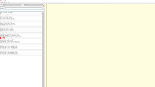 در این مرحله ما قصد داریم تنظیمات برنامه را انجام دهيم. دستگاه حکاکی خود را به کامپیوتر متصل کنید و دو $$ را ارسال کنید. شما فهرستی از پارامترهای ذخیره شده در حافظه Arduino را دریافت خواهید کرد. ما بیشتر با شماره خطها کار داریم: