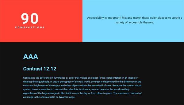 علاوه بر این، Colors.css از طرحهای توانبخشی اختصاصی نیز برخوردار است و شما 90 طرح ترکیبی رنگ که با ویژگیهای WCAG سازگار است را در آن پیدا خواهید کرد. چنین قابلیتی برای کسانی که قصد دارند از طیف گستردهتری از مخاطبان پشتیبانی کنند بسیار سودمند خواهد بود.